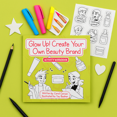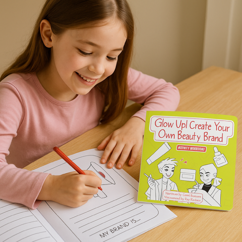 Glow Up! Create Your Own Beauty Brand is a fun, educational, and inspiring workbook designed for children aged 10 and up. Whether they love skincare, makeup, bath bombs, or haircare, this activity book helps them take their product idea and turn it into a real brand plan — just like the grown-up beauty entrepreneurs do! With easy-to-follow prompts, creative colouring pages, and real-world business steps, it’s the perfect introduction to the world of beauty, branding, and building confidence.